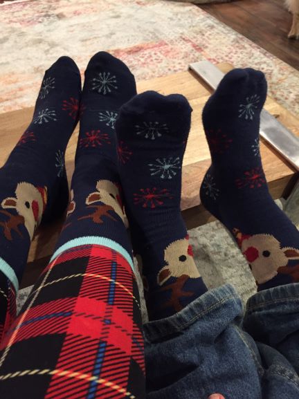 Do you ever feel like what you can do for the kids in your life is not “fancy” enough? It’s not “extravagant” enough? I want to remind you today that little things you do with kids are often the big things. There are many ways to have fun together that don’t cost a thing. Read a favorite book together. Save up toilet paper or paper towel rolls and do a craft. Do something silly together. Here’s an example of that: For Christmas this year, our family decided to dress in Ugly Christmas sweaters or other holiday bits of fun. (And that idea got started by one of our grand kids! 🙂 ) When we all got together, our grandson and I realized that we were wearing matching socks! We had a good laugh about it, had to take our picture together and then he ran off to share the excitement with his mom. It was a fun moment!