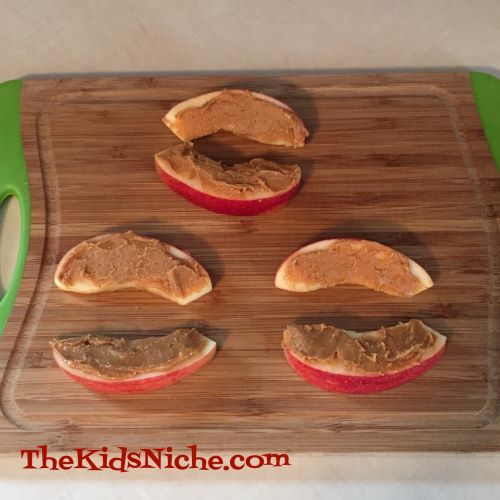 Makes for a yummy, healthy snack for both little people and their bigger caregivers. Our dog even thought the apple and peanut butter part was quite tasty!