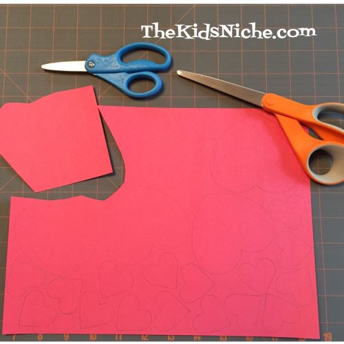 If the kids are big enough to help cut out the hearts, I suggest cutting them apart first to make them easier to handle. More than one child can be cutting at the same time that way too.
