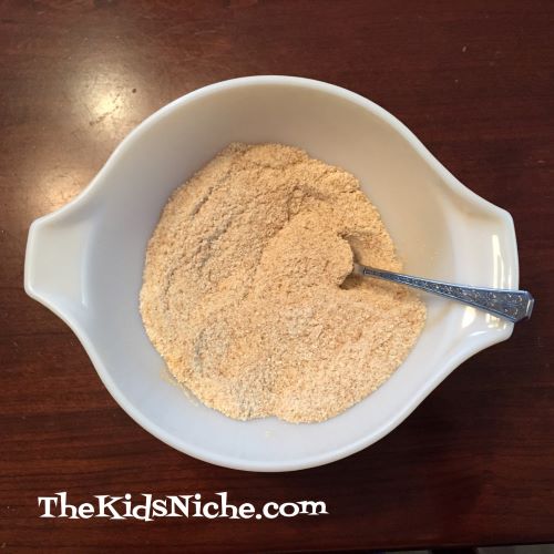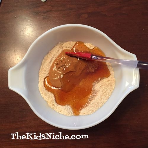 1 Cup nonfat dry milk, 1/2 Cup peanut butter, 1/2 Cup honey and 1/2 Cup graham cracker crumbs. Mix all these ingredients together in a bowl until well blended.