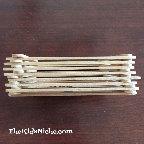 Today let’s talk about another inexpensive but very versatile craft for kids! (Or big kids, say, like a grandma!) Wooden Craft sticks! They come with little notches cut out of them for interlocking or they come like a Popsicle stick. The package I bought are the ones with the notches cut into the sides.
