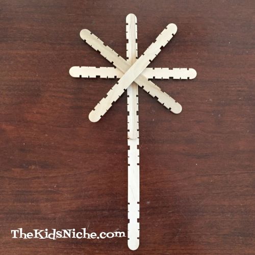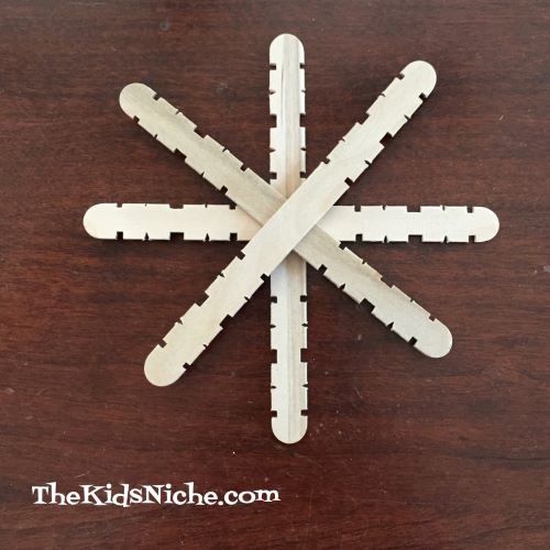 Look what cute snowflakes you could make! I didn’t have any paint handy but think how pretty they would be painted white or blue with some sparkly glitter or fake jewels secured to the ends!