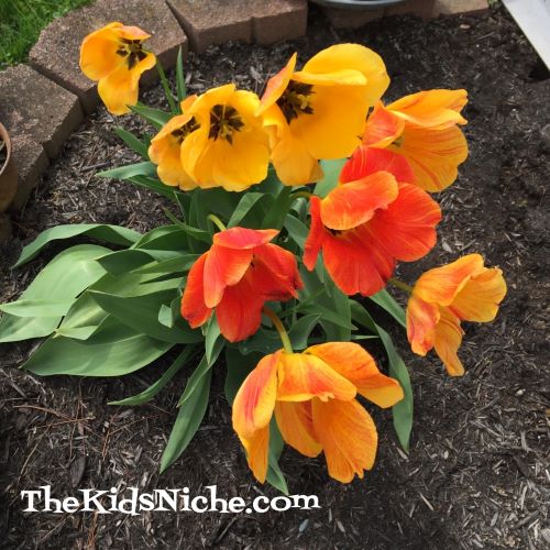 And last, but not least, Tulips in our front flowerbed! What’s popping up in your neighborhood? Kids and adults can enjoy a “treasure hunt” for what’s blooming. Taking pictures to share with someone else adds to the fun. If you’d like to take it a bit further, print the pictures out and make a scrapbook of them. Continue your search all through the Summer months and into Autumn as new flowers appear. It’s a constant changing landscape! When you go for a ride in the car, or a walk down the street, challenge the kids to find different colored flowers. Taking an interest in flowers helps get kids out of the house and outside enjoying nature!