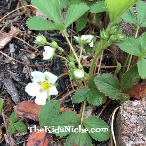 Strawberry blossoms! Which will hopefully produce some yummy strawberries for us to enjoy!