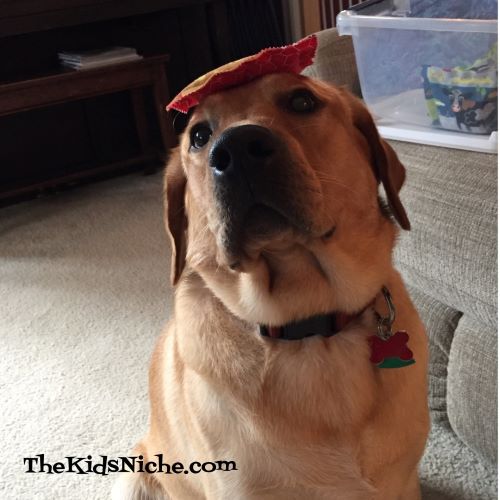 Rusty was my model today for balancing a bean bag on your head. Haha!
