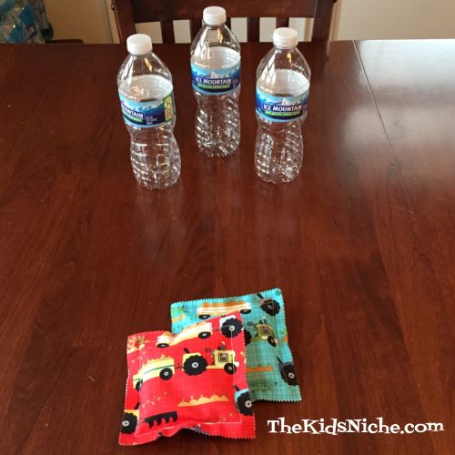 7.) Bean Bag Bowling – This is just like you are probably thinking from the name. Save up a few empty water bottles to use as bowling pins. Set them up on a table or on the floor. Using 2 bean bags per person, slide the bean bag along the table or floor to try and knock down the water bottles.