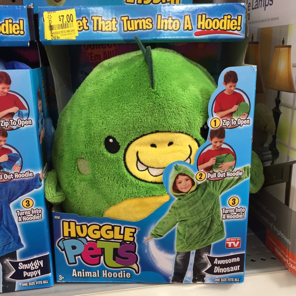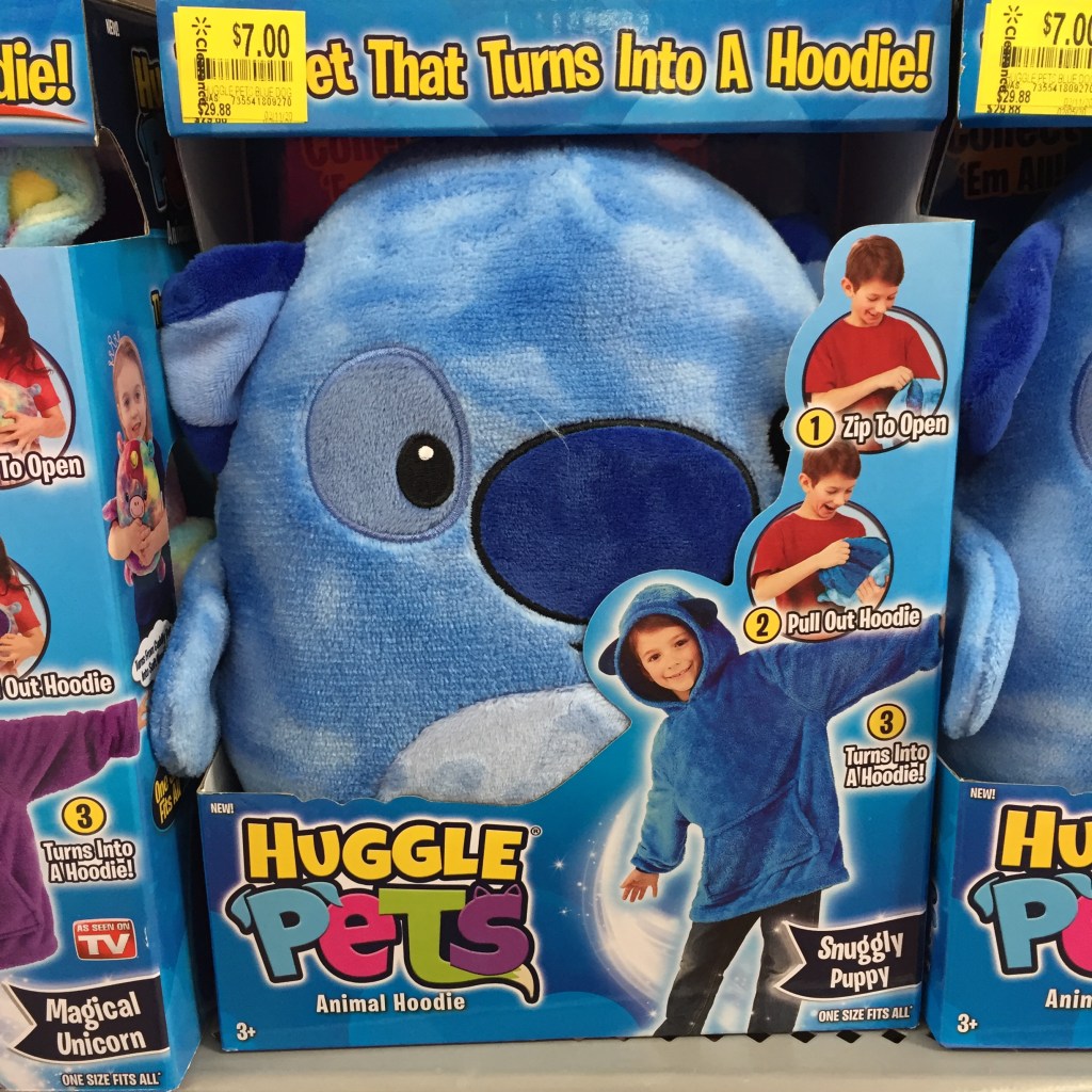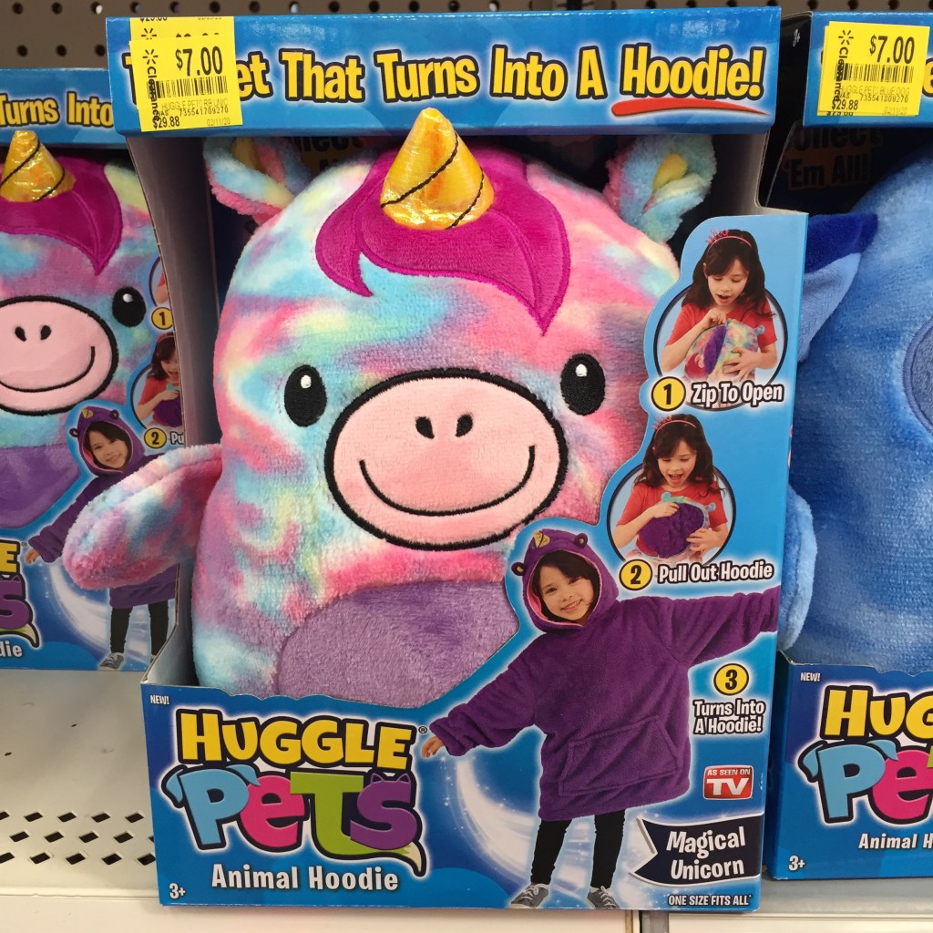Wow, here is a really discounted clearance deal I saw at Walmart! Huggle Pets! And these little buddies are adorable! It’s a combo of a soft furry friend but opens up into a hoodie! How cute is that?! Our Walmart has them in 3 choices…Magical Unicorn…