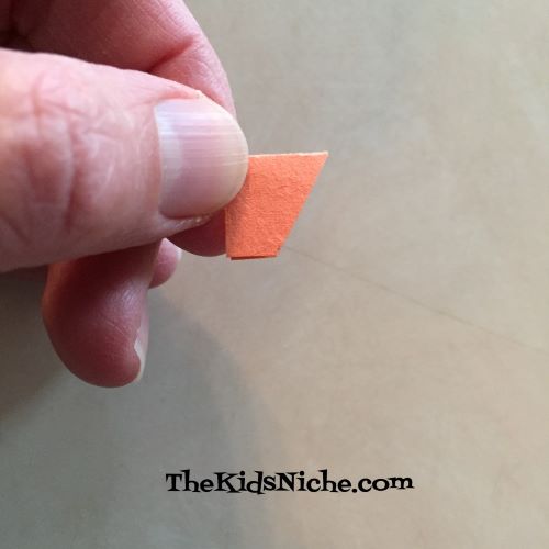 Using the orange construction paper, cut a rectangular piece about 1 inch by 1/2″.
