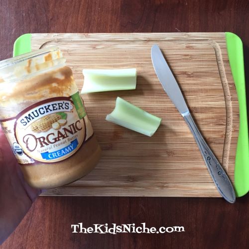 Remember to make a chart of what you think of each flavor. The first way we’ll try is with peanut butter. Yum! If you can’t have peanut butter, maybe you can have cashew butter or almond butter. Be sure to ask mom or dad if you have any food allergies. (I am actually allergic to celery which is kinda sad.)