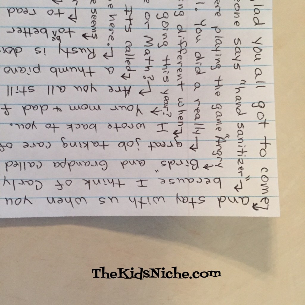 Can you see how I wrote it? I started out the usual way of writing in the first space. But when I got to the right side of the page, I turned the page and wrote down the right side.
