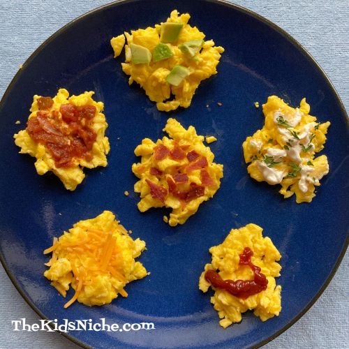 Are you still striking out getting your kids to eat scrambled eggs? Then it might be time to bring out the big guns…put some cookie/cake sprinkles on them! Haha! Sprinkles make everything taste better! 🙂 I hope these ideas have helped you and I wish you luck on your eating adventures!