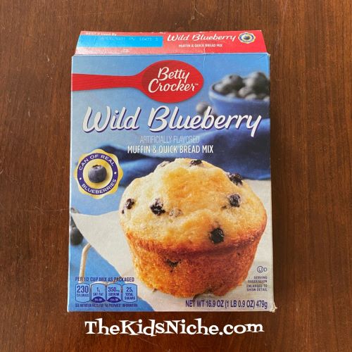 This one came from a Betty Crocker muffin mix. A prepackaged muffin mix is a great way to help your kiddos learn how to bake muffins.