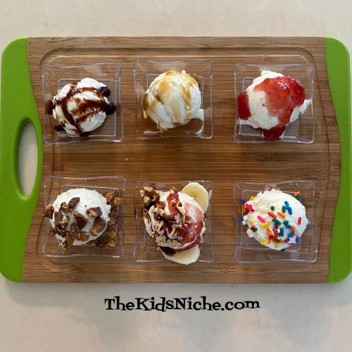 “You scream, I scream, We all scream for ice cream!” Have you heard that saying before? One tidbit I read said it came from the original “I-Scream Bar” or what later became known as the Eskimo Pie. Be that as it may, who is ready to taste test some ice cream?! Ooooo, ME, of course! There are soooooo many combinations when it comes to ice cream and ice cream toppings but for today, we will use Breyer’s vanilla ice cream and try 6 different toppings on it. Ready? Are you drooling? Let’s go!