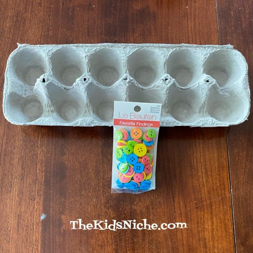 There are so many fun (and educational) things you can do with a simple bag of buttons! Let’s talk about some today! An egg carton will come in handy while playing with the buttons.