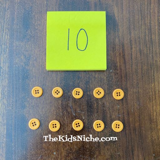 You can ask your child to count out a certain number of buttons of a certain color. For instance, count out 10 yellow buttons.
