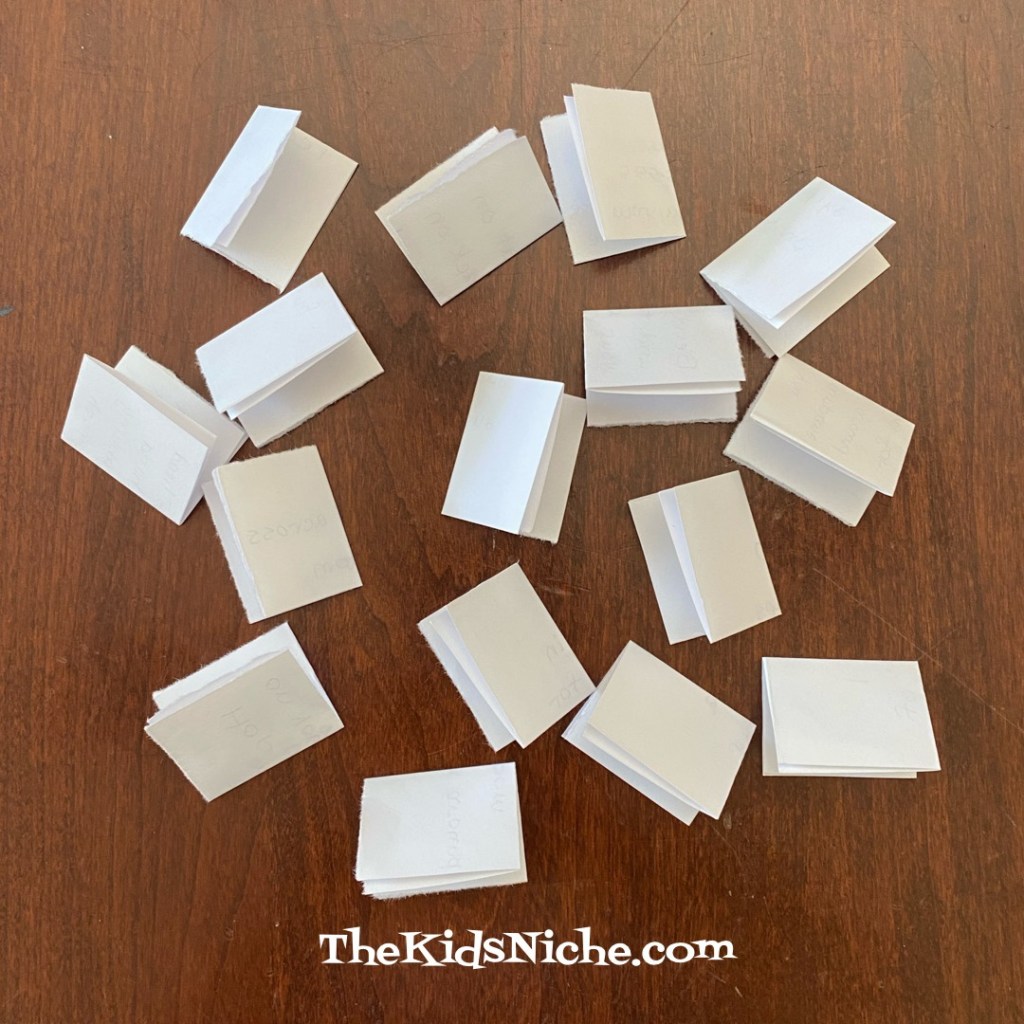 Make the piece of paper into small squares by folding and tearing or by using a pair of scissors to cut it. I made mine into 16 pieces.