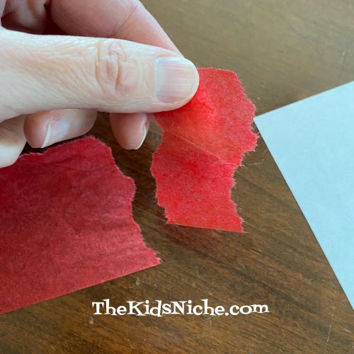 Take one of the ripped pieces of tissue paper and wad it up into a little ball. Yep, squish it up! Then press it down into the glue. This picture is 3 balls.