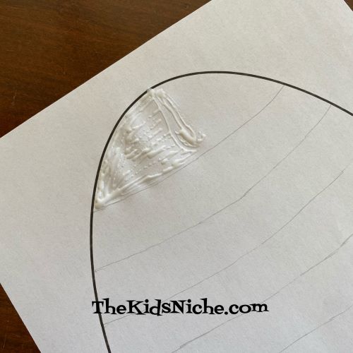 Apply some glue to a small area of the first section of your egg.