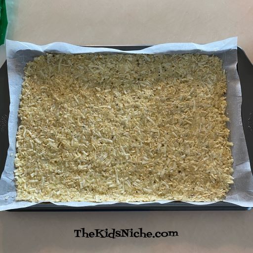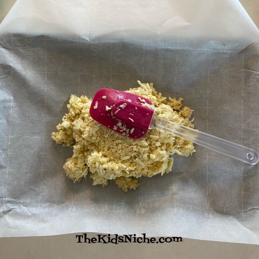 Line a baking sheet with parchment paper and put the dough mixture onto the baking sheet.