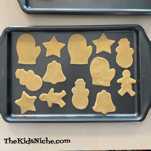 So we were back in business! Once the rest of the cookies were cutout and sprinkles were added, then on to the baking! Mmmm! It smelled so good in here!