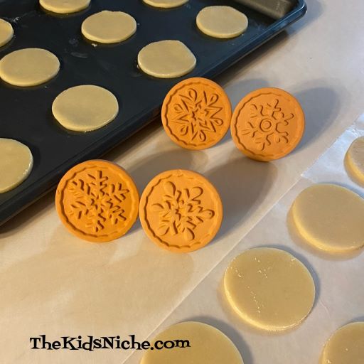 Then it was time to go back to the ones I had to make over because of the forgotten vanilla. This was a new way to do cookies for me, using terra cotta cookie stamps.
