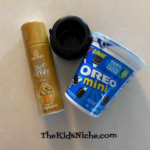 And you’ll need some mini Oreo cookies and a can of gold food spray.