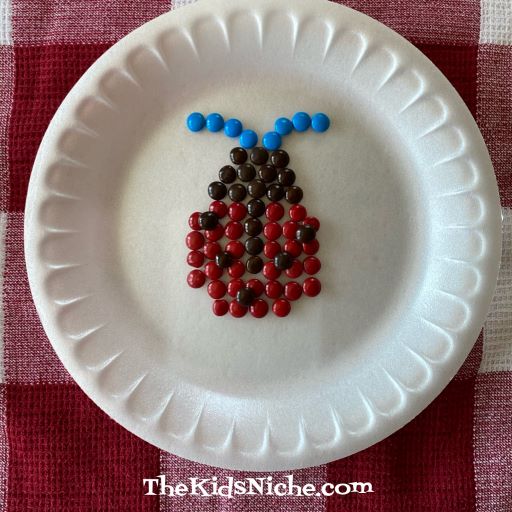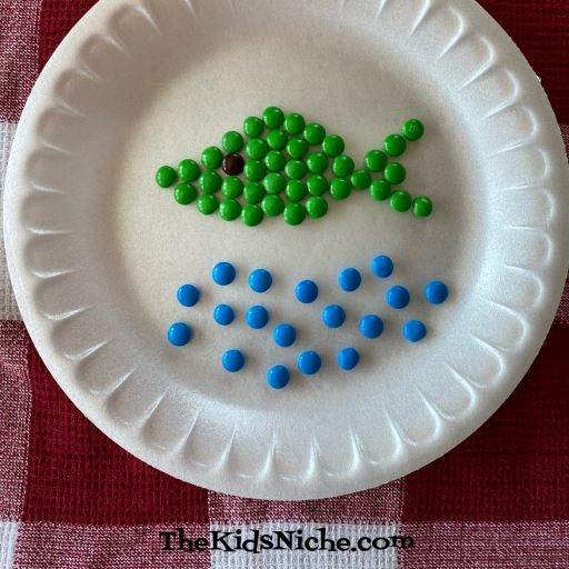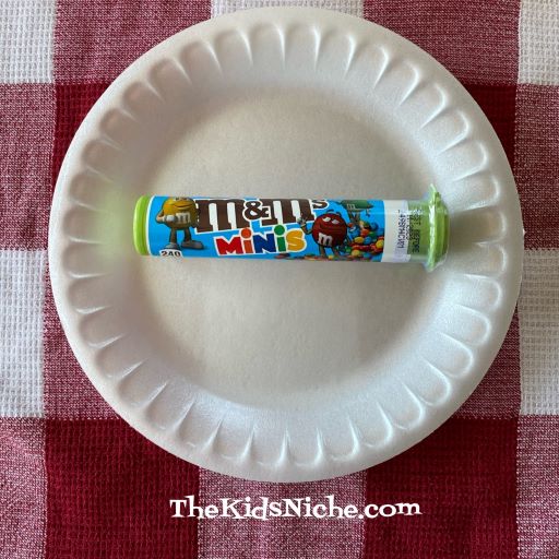 Whoohoo! I am so ready for Spring! How about you? The calendar says it is Spring, but boy, it is cold and windy outside! Let’s pretend not to notice and have some fun inside today! We can have some great fun making pictures with Mini M&M’s candy pieces! You will need a white plate or a white piece of paper and some Mini M&M’s.