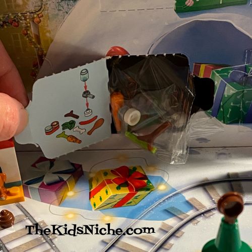 To add these things to our winter scene, I placed them by some of the pets from the advent calendar. 🙂