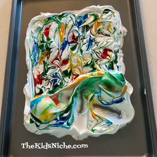 Using a toothpick…or other small utensil…swirl the colors throughout the Cool Whip.