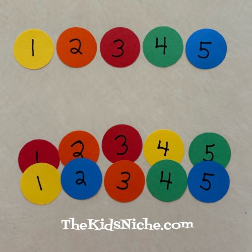 As you’re ready to move onto harder matches, you can add numbers to the shapes. You can practice getting the numbers in the correct order.