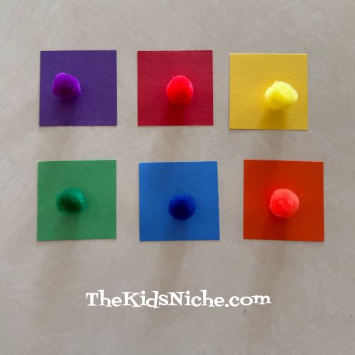 If you have some colored pom poms on hand, you can also use them for matching to the shapes.