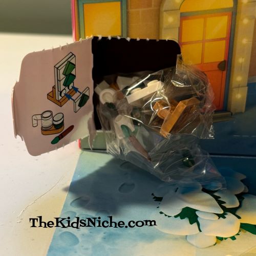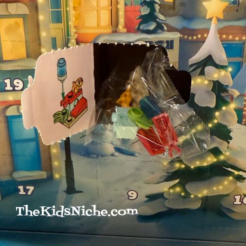 Welcome back for Day #2 of our Lego Friends Advent calendar! How’s the weather at your house? We got a bunch of snow last night…maybe 5″ or so? Schools were closed for the day and we didn’t venture out except my poor husband shoveled snow and used the snowblower on the driveway. But on to our Lego calendar! 😉