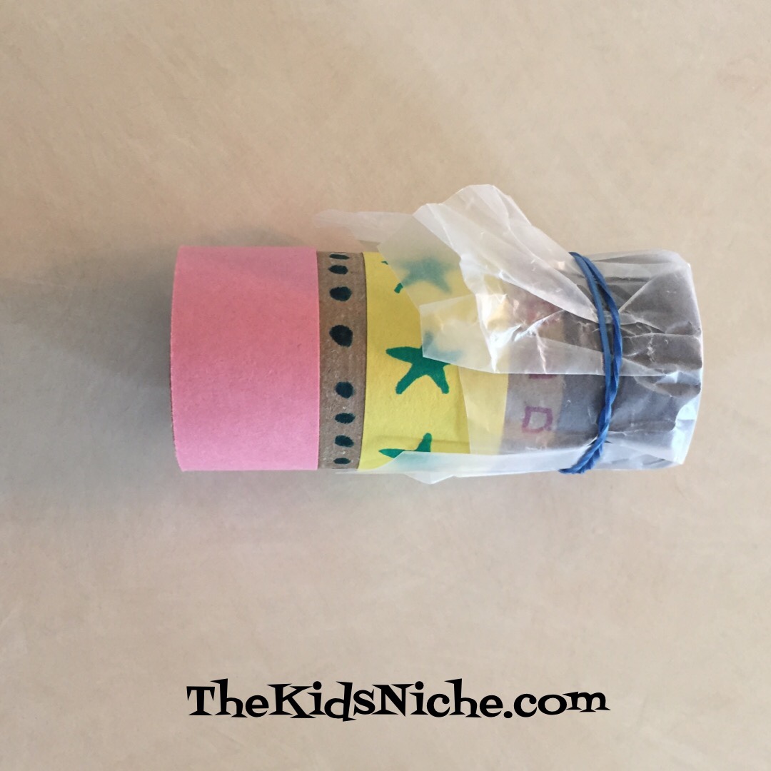 Take a piece of wax paper…either a square or a circle…and cover one end of the tube. Hold it in place with a rubberband. Your kazoo is complete! The fun really takes off when you place the open end of the kazoo around your mouth and start humming! It makes a very cool buzzy sound. Make one for each member of your family or play group and have a parade! It might be easier on your ears if everyone is humming the same song, but I’m betting the kids don’t care if each of them hums a different tune! 😉😂 Have fun!!