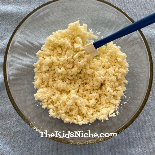You will need 2 Cups of riced cauliflower (can be fresh or you can use the frozen riced cauliflower), 2 Cups of grated mozzarella cheese and 2 eggs…plus your sauce and pizza toppings. I started out following Dr. Eric Berg’s recipe but I have made a couple of changes. Dr. Berg uses fresh riced cauliflower, but I mostly use the Green Giant frozen Riced Cauliflower because its a big time saver.