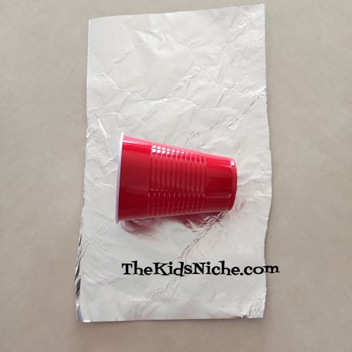 Tear off a piece of foil a little bit bigger than your cup.