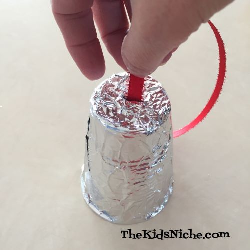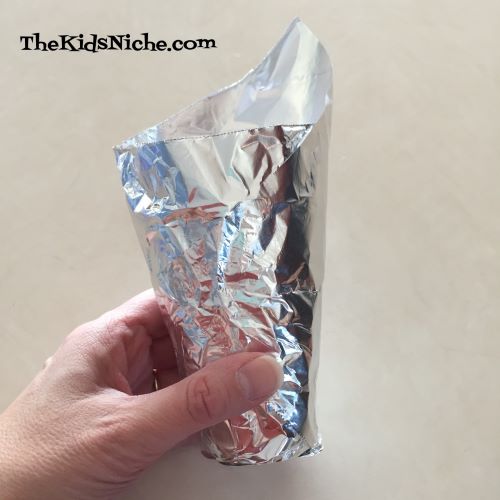 Starting at one end, wrap the foil around the cup. I started at one end and rolled the cup slowly while forming the foil to the cup.