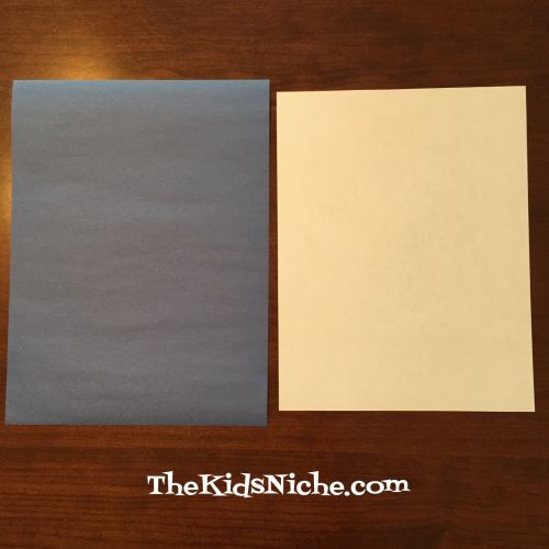 Paper snowflakes are the foundation for our snowman craft for today. You’ll need a piece of colored paper for the background and some white paper for the snowman. I chose blue construction paper for my background.
