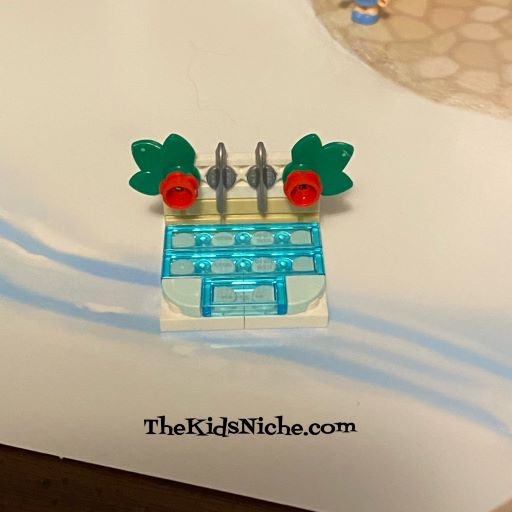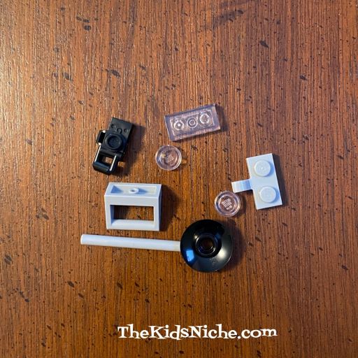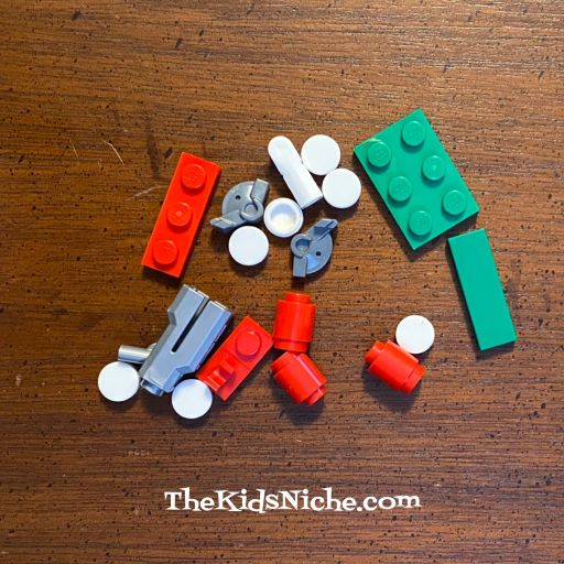 One gray piece looks like it could be part of a gun? I went back to the handy dandy online picture of the advent calendar and that’s right! It does make a tiny gun and…parents, beware! It really does shoot! The set also makes 3 little targets to shoot at. The boys are going to like this one! 😉
