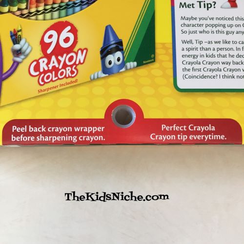 As you can see from the writing on the box, there are 24 crayons included. The box also says “Bursting bits of color! Each Crayola Confetti Crayon has specks of color inside for surprising streaks and a party in every crayon!”