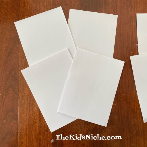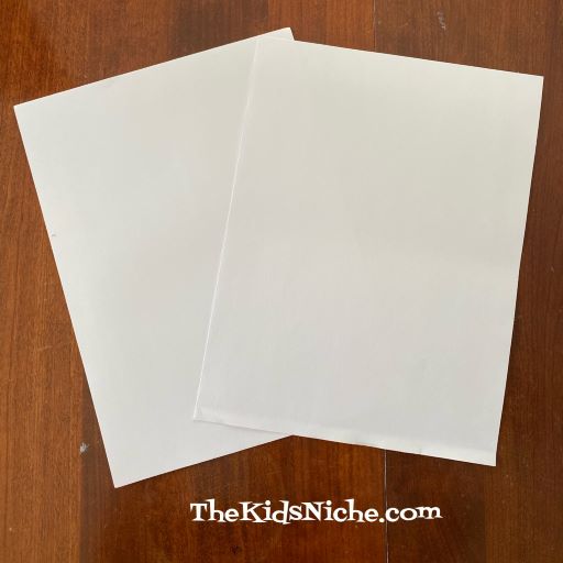 You will need 2 sheets of white paper. I used a sturdy type of construction paper. (I am showing you how to do this project 4 ways, but if you’d rather you can use just one piece of paper and still make 2 pictures.) 🙂