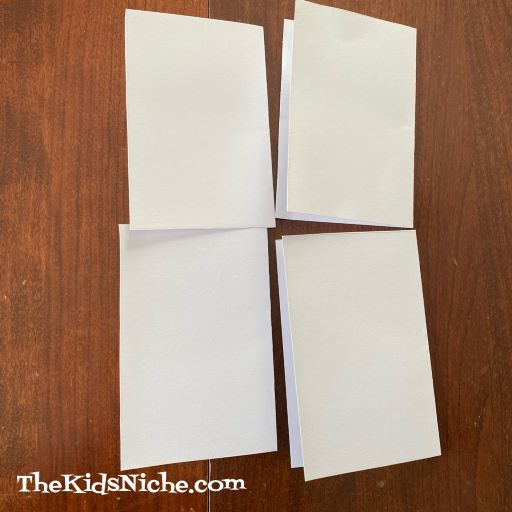 Take 4 of the smaller pieces and fold each one of them in half. Leave 4 smaller pieces of paper flat.