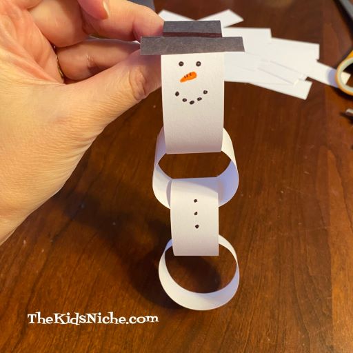 And you’re done! Now you have a cute snowman to use to decorate your house for winter! Have fun making paper chain snowmen! 🙂