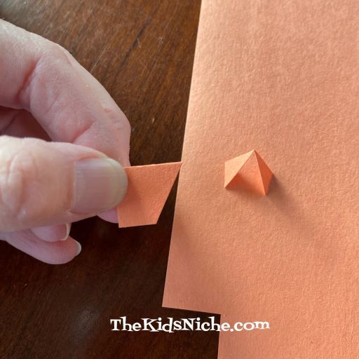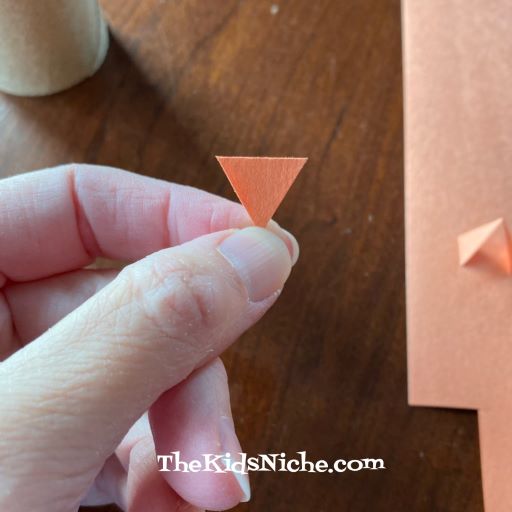 Let’s make the turkey’s beak next. Cut out a small rectangle from either orange or yellow paper.