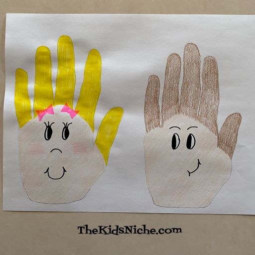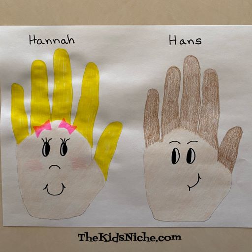 And there you have 2 new friends…Hannah and Hans. (Get it? Hannah and Hans made from hands? Haha!) 😉