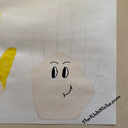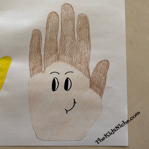 Have you ever traced around your hand with a pencil and paper and turned that hand into a picture? One popular way is to make a turkey at Thanksgiving time. But today we’re making some new friends by tracing around our hands and coloring them in with crayons or markers.