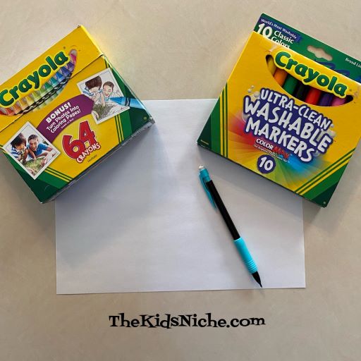 All you need is a piece of paper, a pencil, crayons or markers and your hand. 😉