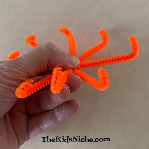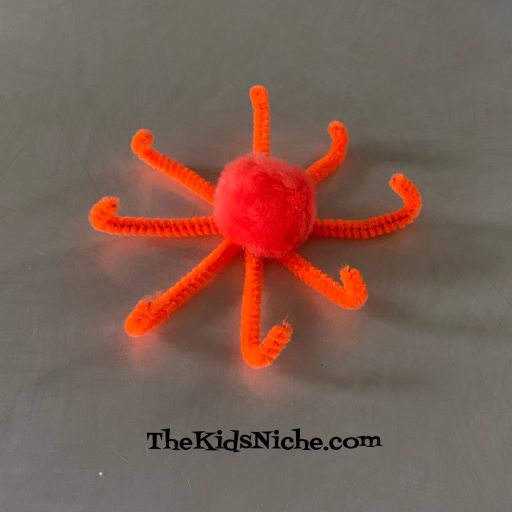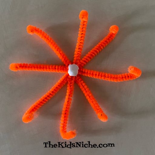 Curl each end of the pipe cleaners up a little bit for the octopus’s arms.