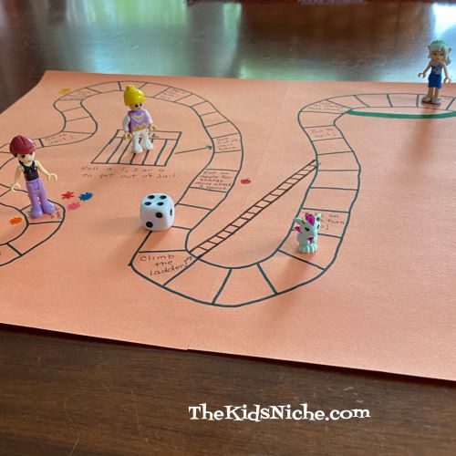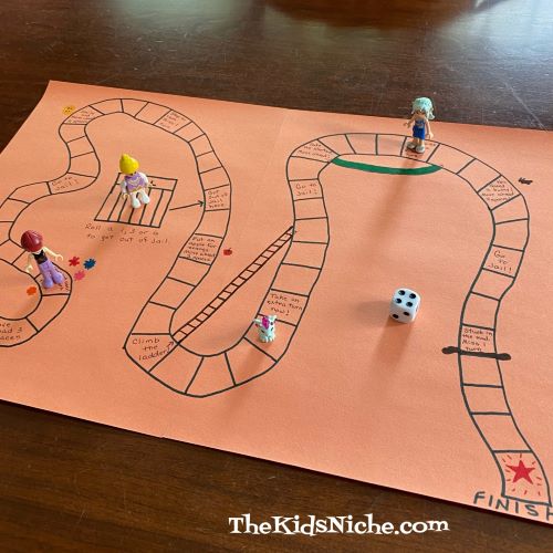 Let the kids make up the rules and the things to write in the spaces. Your game may get a little crazy and you may spend the entire game in Jail, but it’s fun to let the kids have the freedom to control the game. It’s also great to make a game yourself that has a set of rules to follow to help kids learn about following directions. But sometimes, crazy fun is the best fun! 😉 And the things kids can dream up that you have to do can be pretty hilarious!
