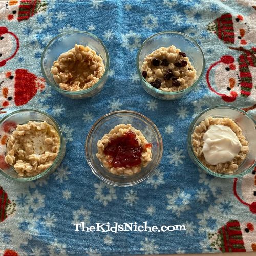 While the cookies are drying, fill the black pots not quite full with the cereal.