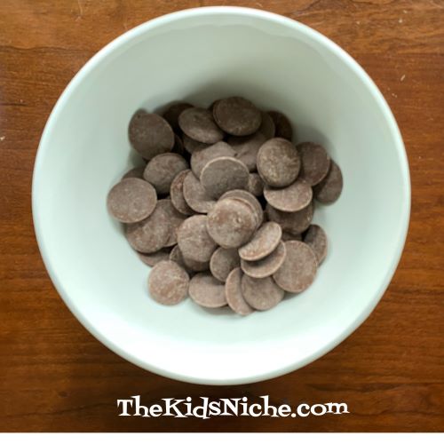 Place some chocolate…I used the wafers…in a microwave safe bowl and microwave according to the package directions until they are completely melted.